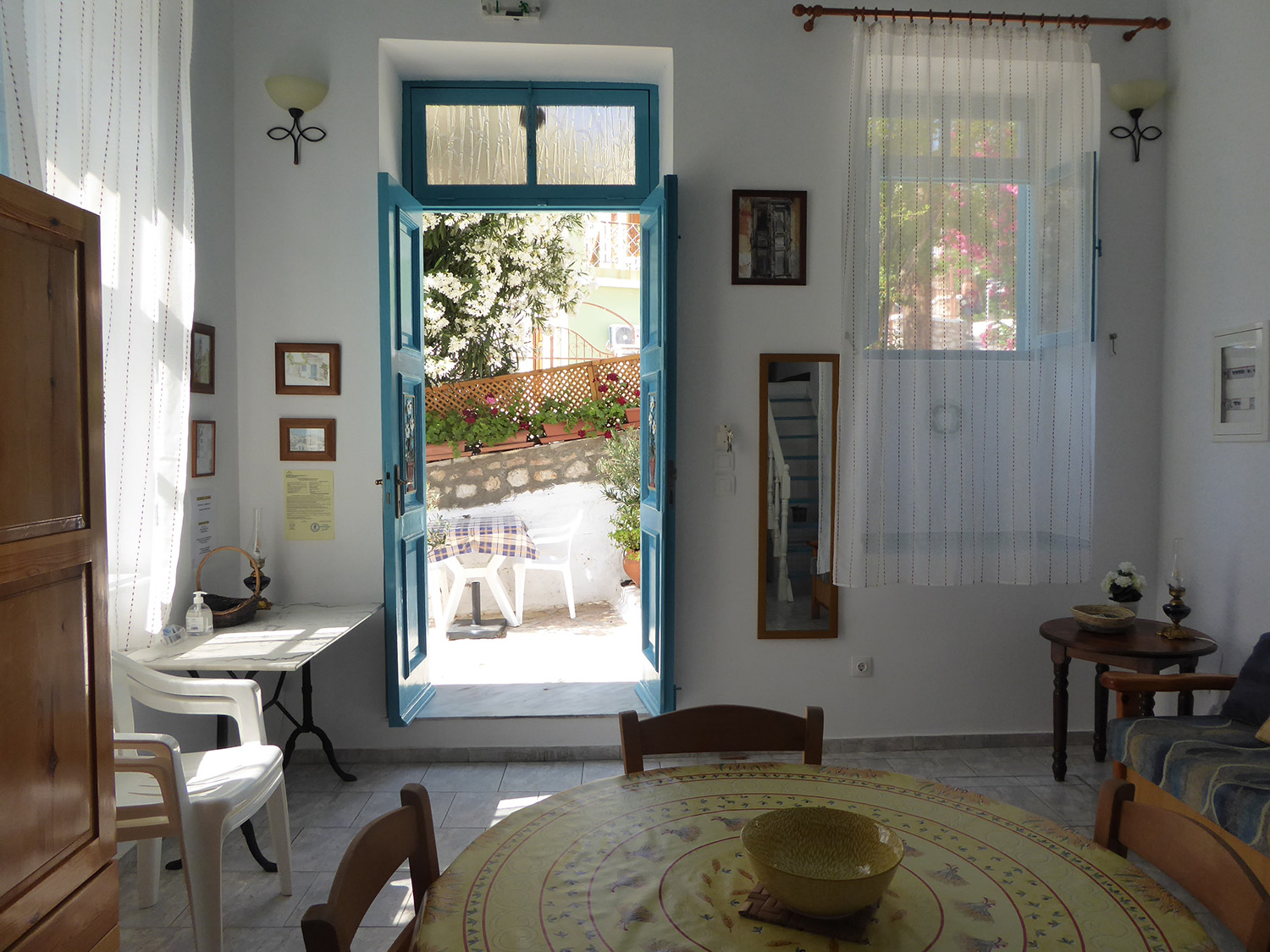 In the real center of Halki, walking distance (5minutes max) for all main places in town, while only 15 minutes walking from Podemos and Ftenagia beaches. Really good location.