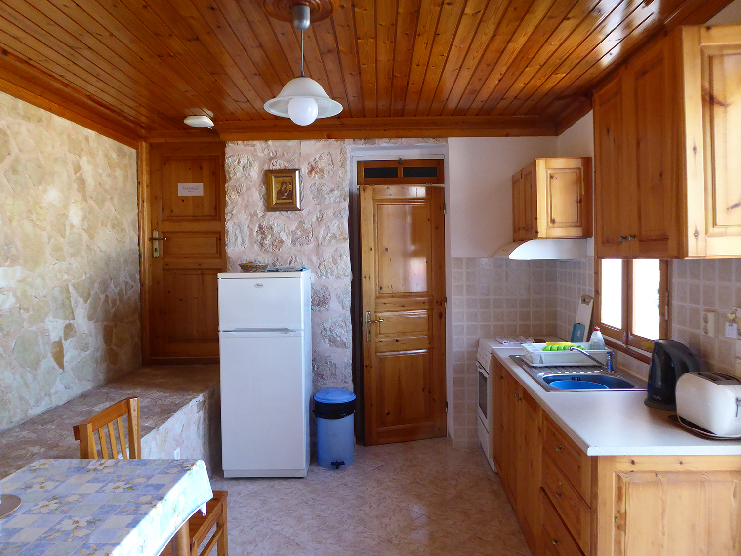 This studio has its own private and gated terrace with fantastic views down to the harbour and across to Rhodes. It is a charming space but a little bit different in character because the inside is stone-faced. It has been tastefully furnished with twin beds, fitted cupboards and all the expected kitchen facilities including a cooker and large fridge. The bathroom is compact, but has a proper shower, toilet and hand basin.